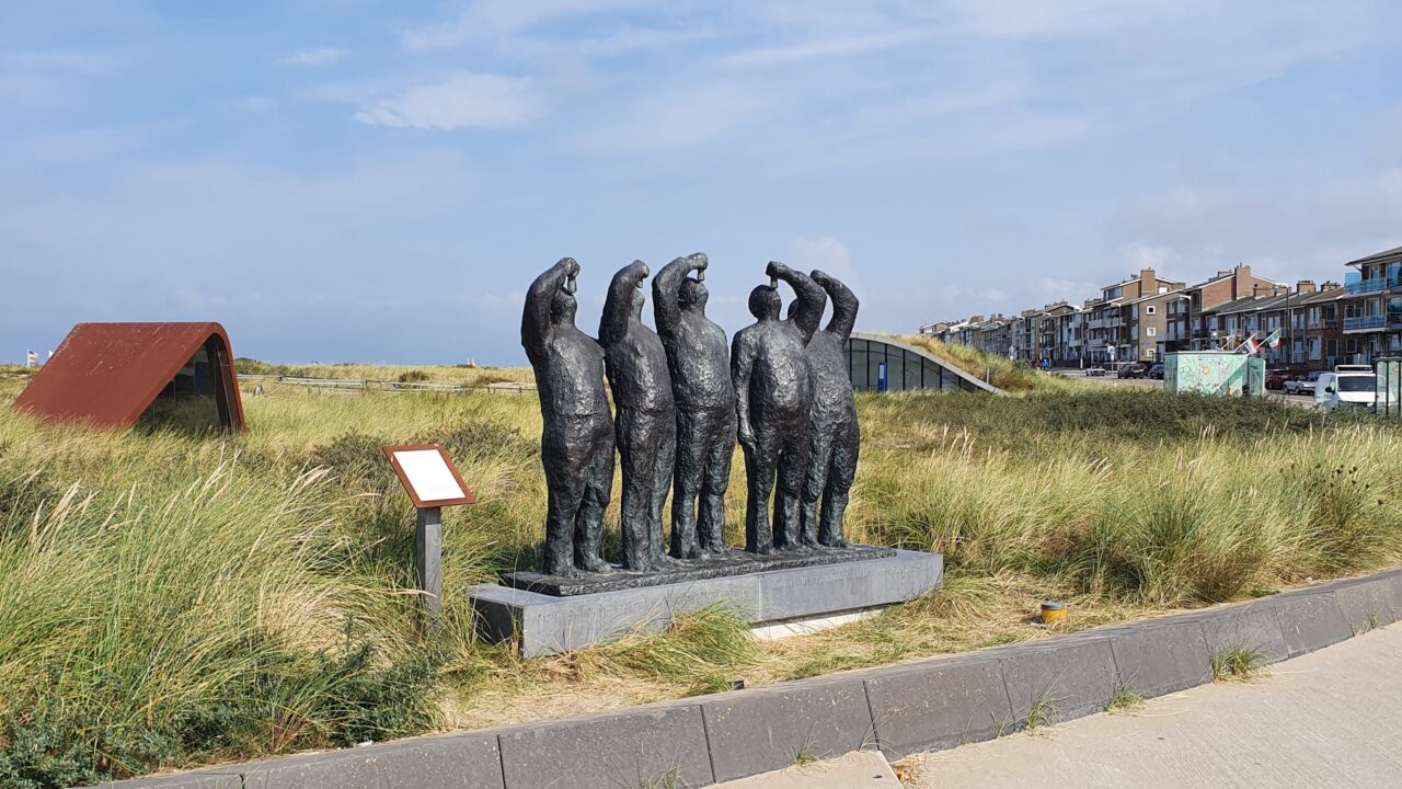 Headerfoto: Beeld “Maatjes” in Katwijk boven parkeergarage in de duinen: identiteit en 3D-ordening